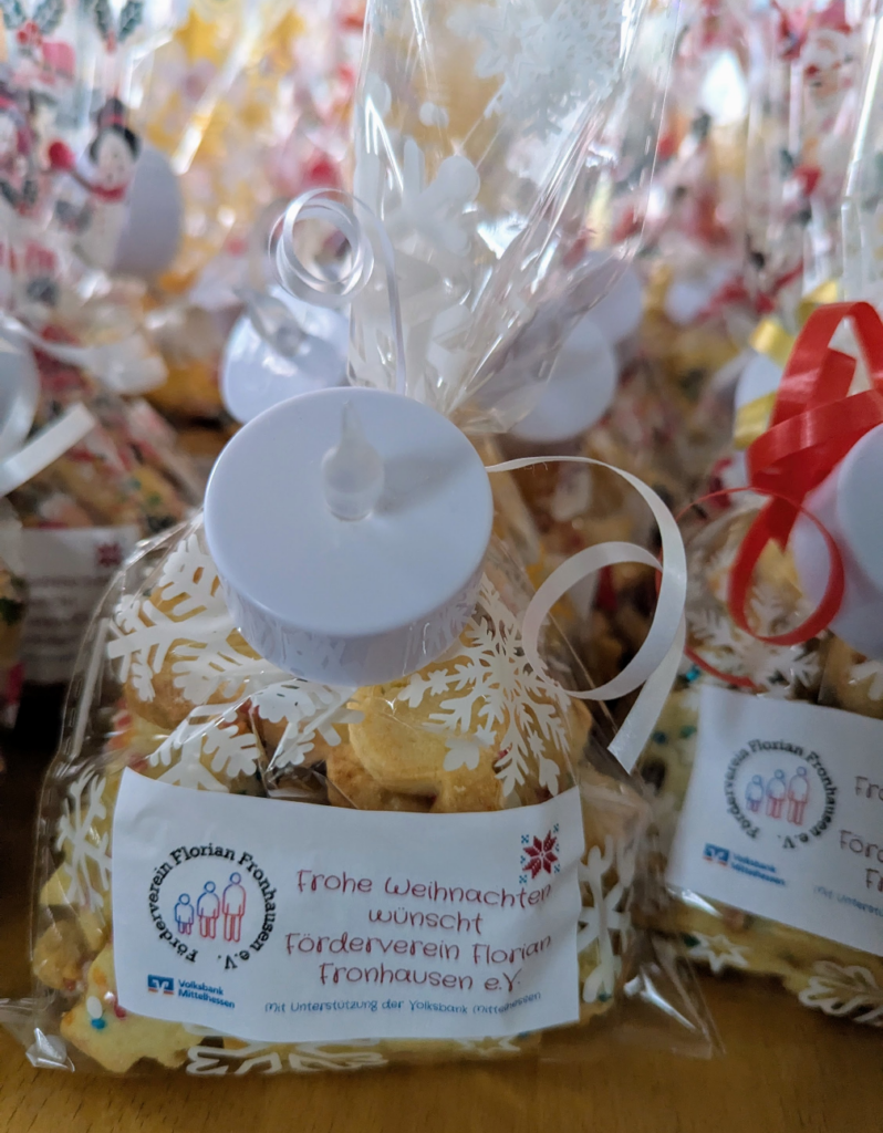 „Es weihnachtet sehr“ – unter diesem Motto hat der Förderverein Florian Fronhausen e.V. in diesem Jahr eine besondere Freude bereitet. Mit Unterstützung der Volksbank Mittelhessen, die unser Projekt finanziell gefördert hat, konnten wir 120 liebevoll gepackte Plätzchentüten für die Bewohnerinnen und Bewohner des Seniorenheims Fronhausen vorbereiten. Die Plätzchen wurden vom Vereinsvorstand persönlich gebacken, mit viel […]