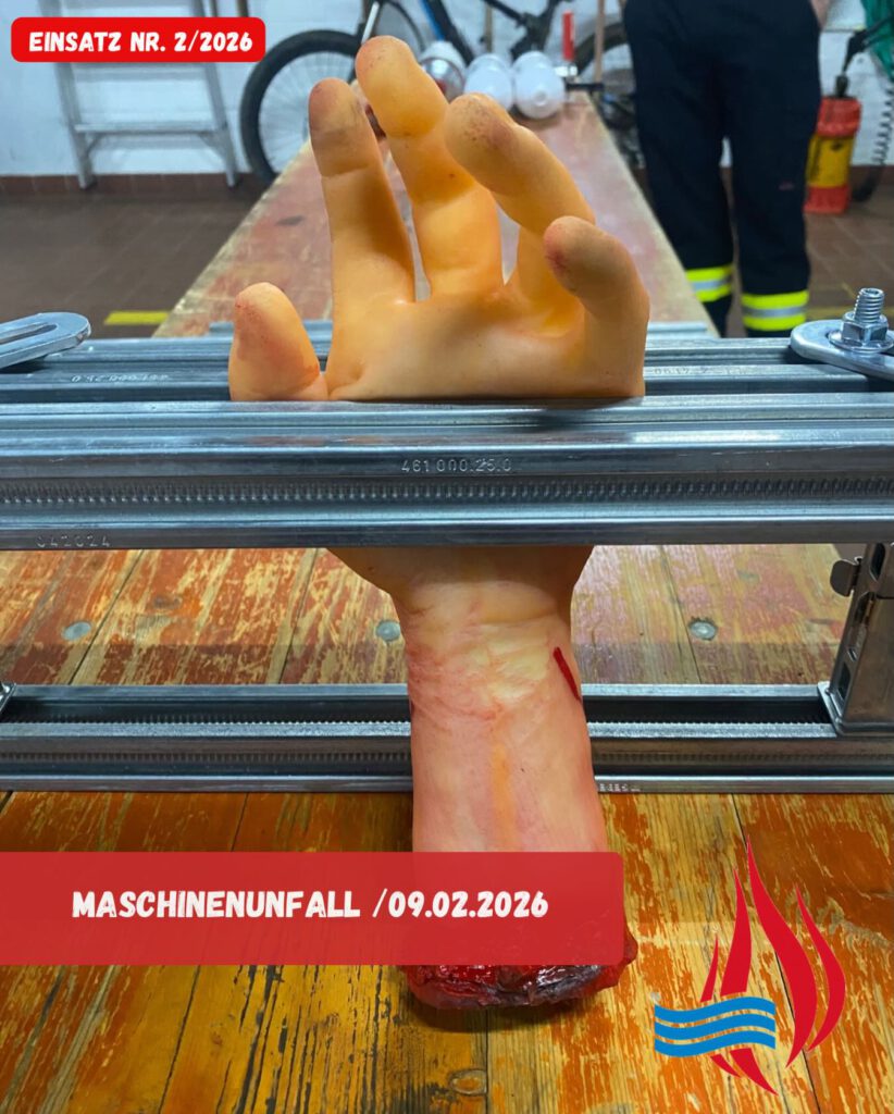 Heute Morgen gegen 09:00 Uhr wurden wir zu einer Ortsansässigen Firma alarmiert, dort kam es während Servicearbeiten an einer Maschine zu einem Unfall. Bei unserem Eintreffen war die betroffene Person schon befreit, wir unterstützen den Rettungsdienst und betreuten die Ersthelfer bis zum Eintreffen des PSNV Teams. LK/JS