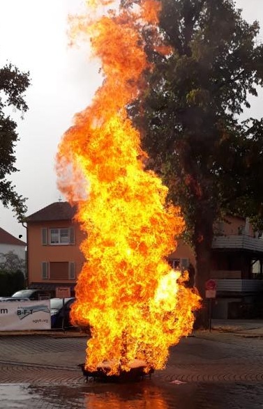 Gemeinsam mit unserer Jugendfeuerwehr könnt ihr an unserem Feuerlöschtrainer den Einsatz eines Feuerlöschers ausprobieren.